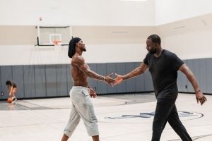 体育资讯9月2日讯 今日,勇士球星吉米-巴特勒在微博晒出了与队友德雷蒙德-格林一同训练的照片。