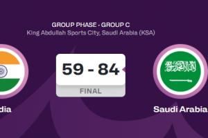 体育资讯08月10日讯 男篮亚洲杯小组赛,东道主沙特84-59轻取印度,获得C组第二。