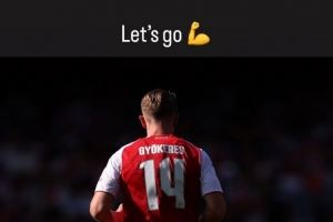 体育资讯8月17日讯 本轮英超焦点战阿森纳对阵曼联即将开始,阿森纳新援约克雷斯在个人社媒晒出照片为本场比赛预热,配文写道:“加油!”