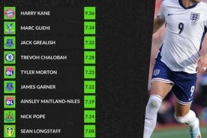 体育资讯10月3日讯英格兰即将公布最新一期球队名单,数据网站Whoscored也盘点了本赛季各联赛中